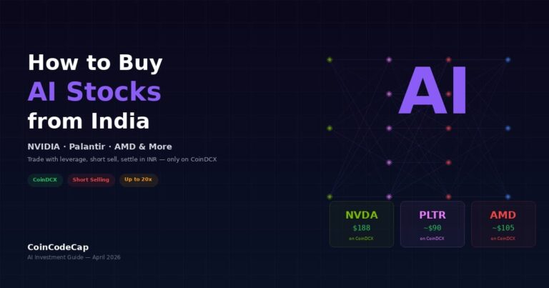 Indian residents can buy AI stocks like NVIDIA, Palantir, and AMD through CoinDCX US Futures (₹100 minimum, up to 20x leverage, short selling, INR settlement, 24/7 trading) or through LRS platforms like Vested Finance and INDmoney (fractional shares from $1, actual ownership, SIPC protection).
