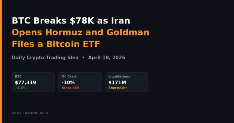 Three catalysts stacked on top of each other in the same session. First, the Hormuz reopening removed the single biggest macro risk that had been capping crypto since late February. Brent crude dropped to $89 and WTI fell to $84.